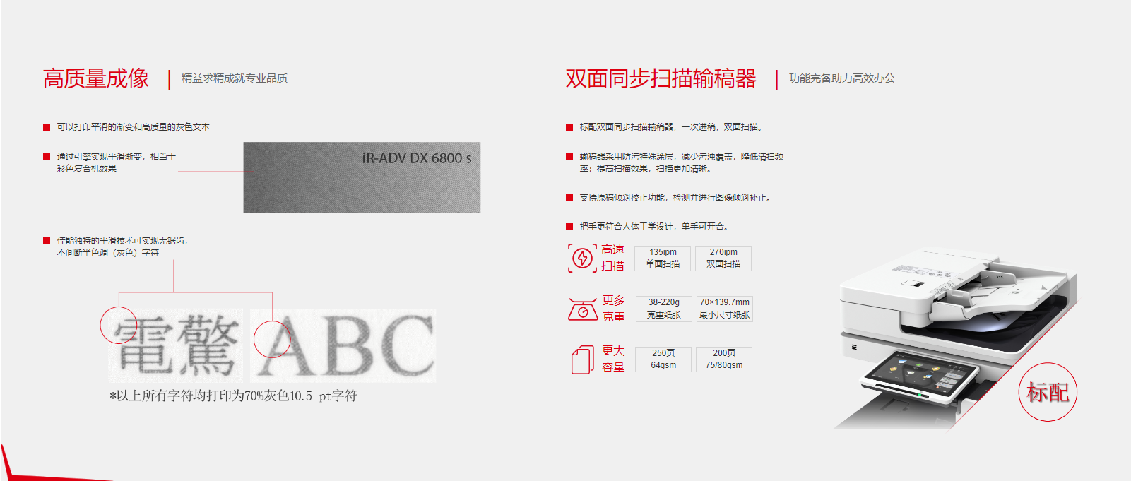 打印速度:70張/分鐘